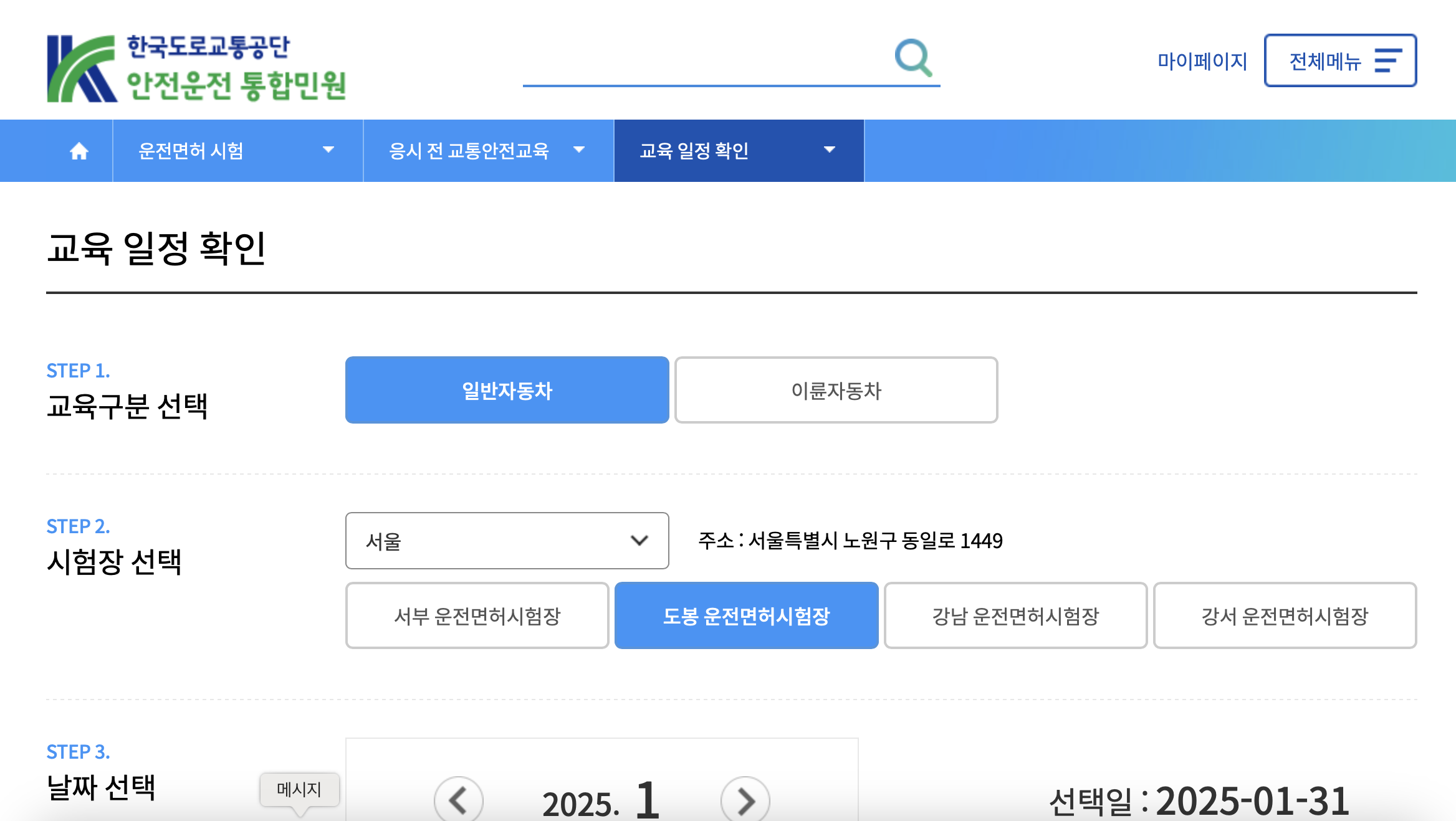 응시 전까지 교통안전교육 이수를 마쳤다면 학과 시험이 가능합니다.