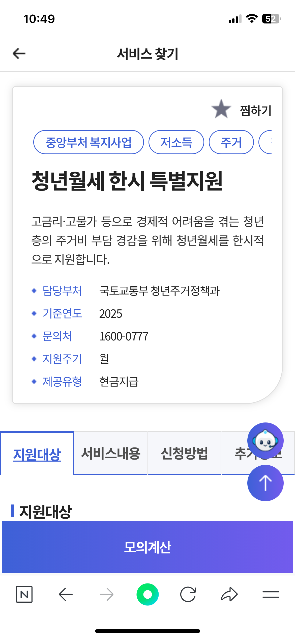 3. 청년월세 한시특별지원 모의계산