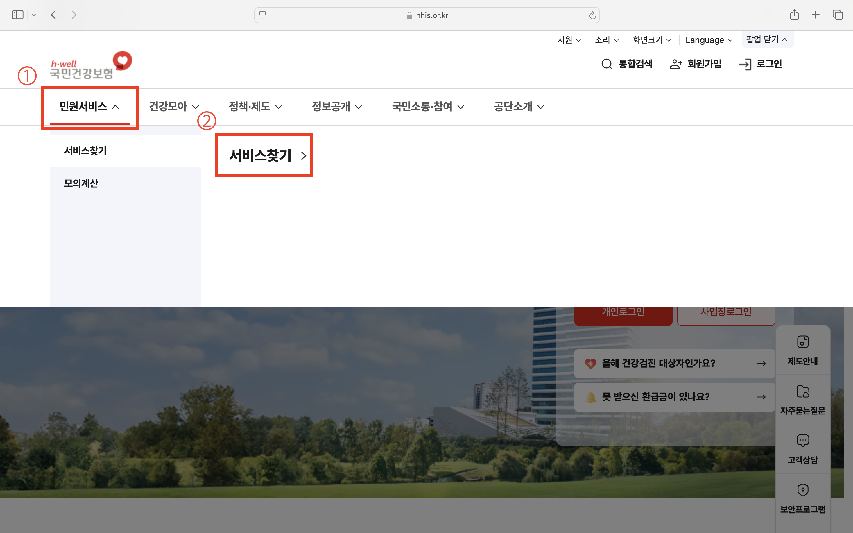 (1) 민원서비스 > 서비스 찾기