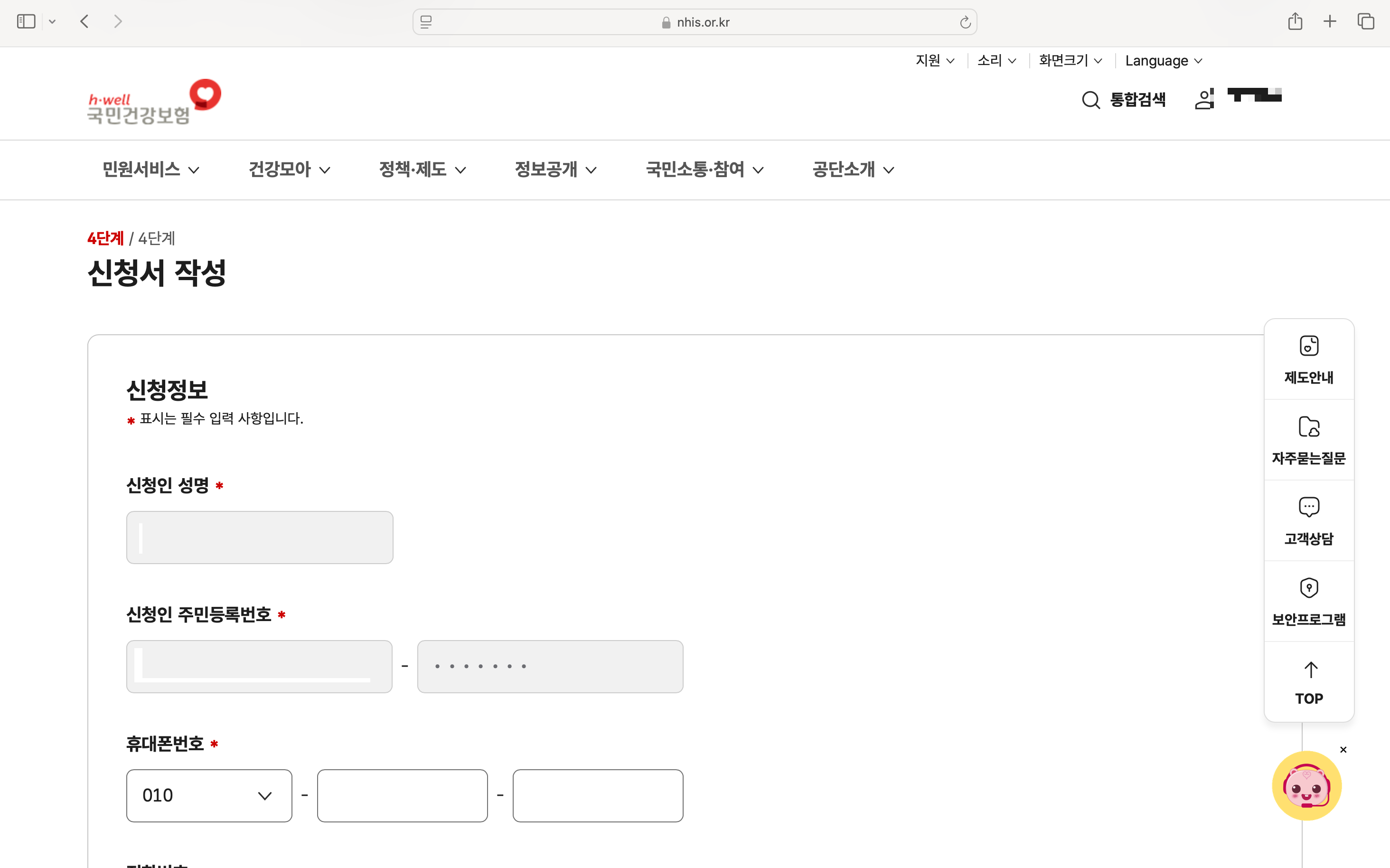 (4) 신청서 작성